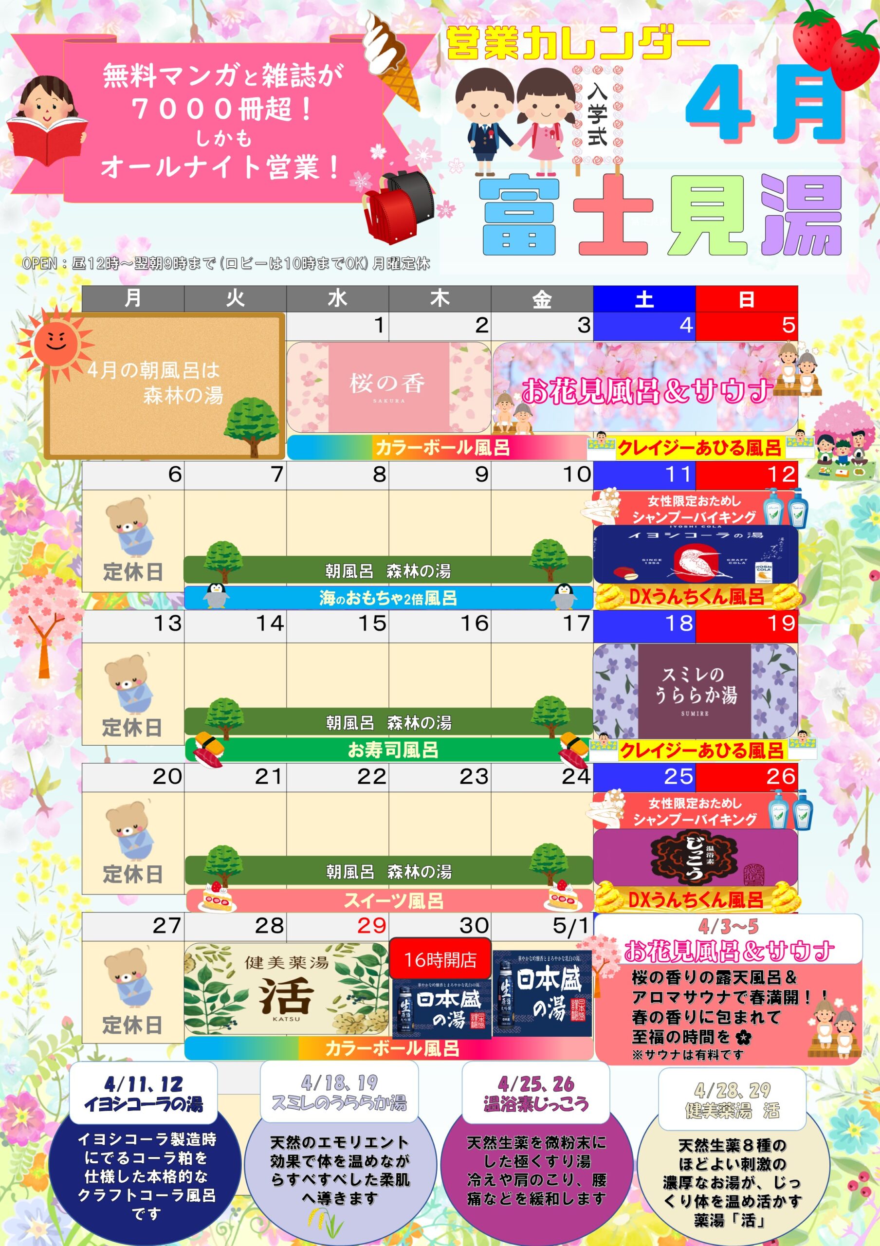 2026.04.03 2026年4月イベントカレンダー※更新あり 修正:4/30(木)は16時開店となります。 4/30(木)、5/1(金)日本盛の湯イベント実施いたします。 Post Share Hatena Pocket RSS feedly Pin it 2026年3月イベントカレンダー GWイベントのお知らせ